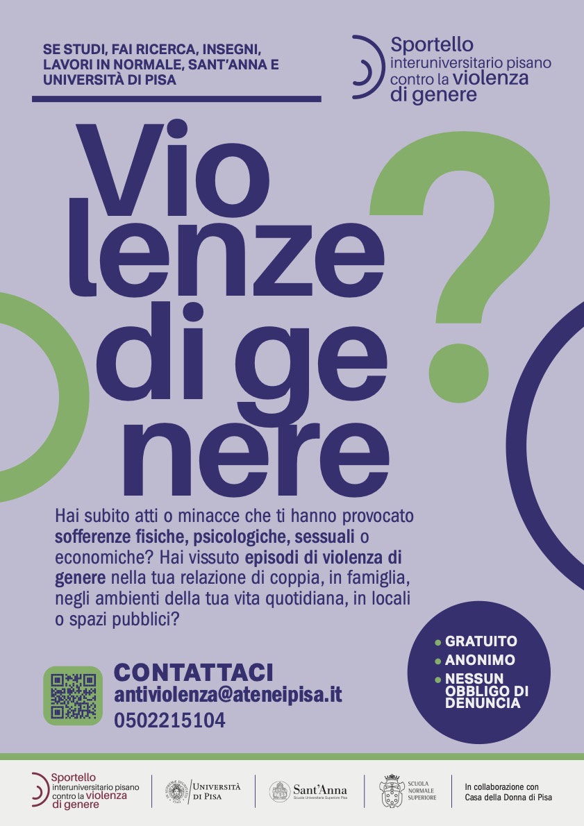 Lo Sportello è a disposizione di chi studia, fa ricerca, insegna e lavora all’Università di Pisa, alla Scuola Normale Superiore e alla Scuola Superiore Sant’Anna.